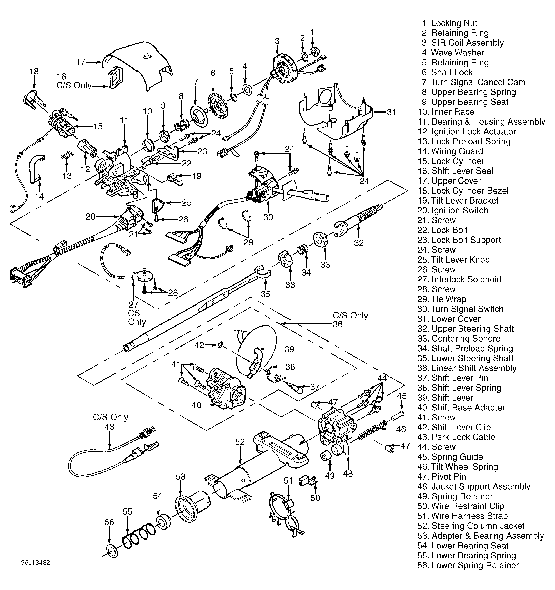NOTE: Use exploded view illustrations for overhaul of steering column assembly. See Figure or Figure. Perform overhaul procedure with steering column removed from vehicle, and with steering wheel and upper and lower cover removed.