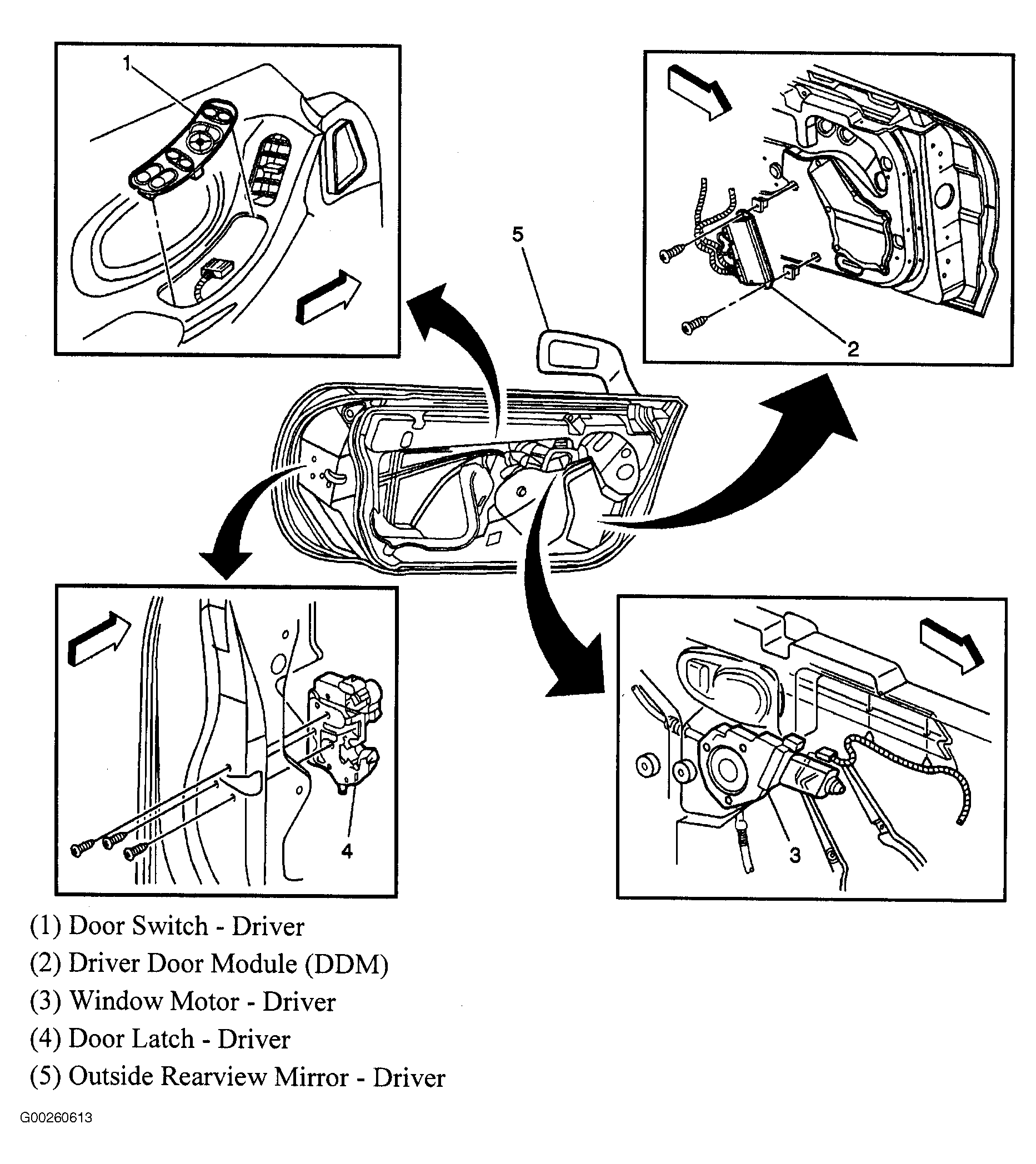 | Driver Door Module (DDM) | In lower center of respective door. See Figure . |
