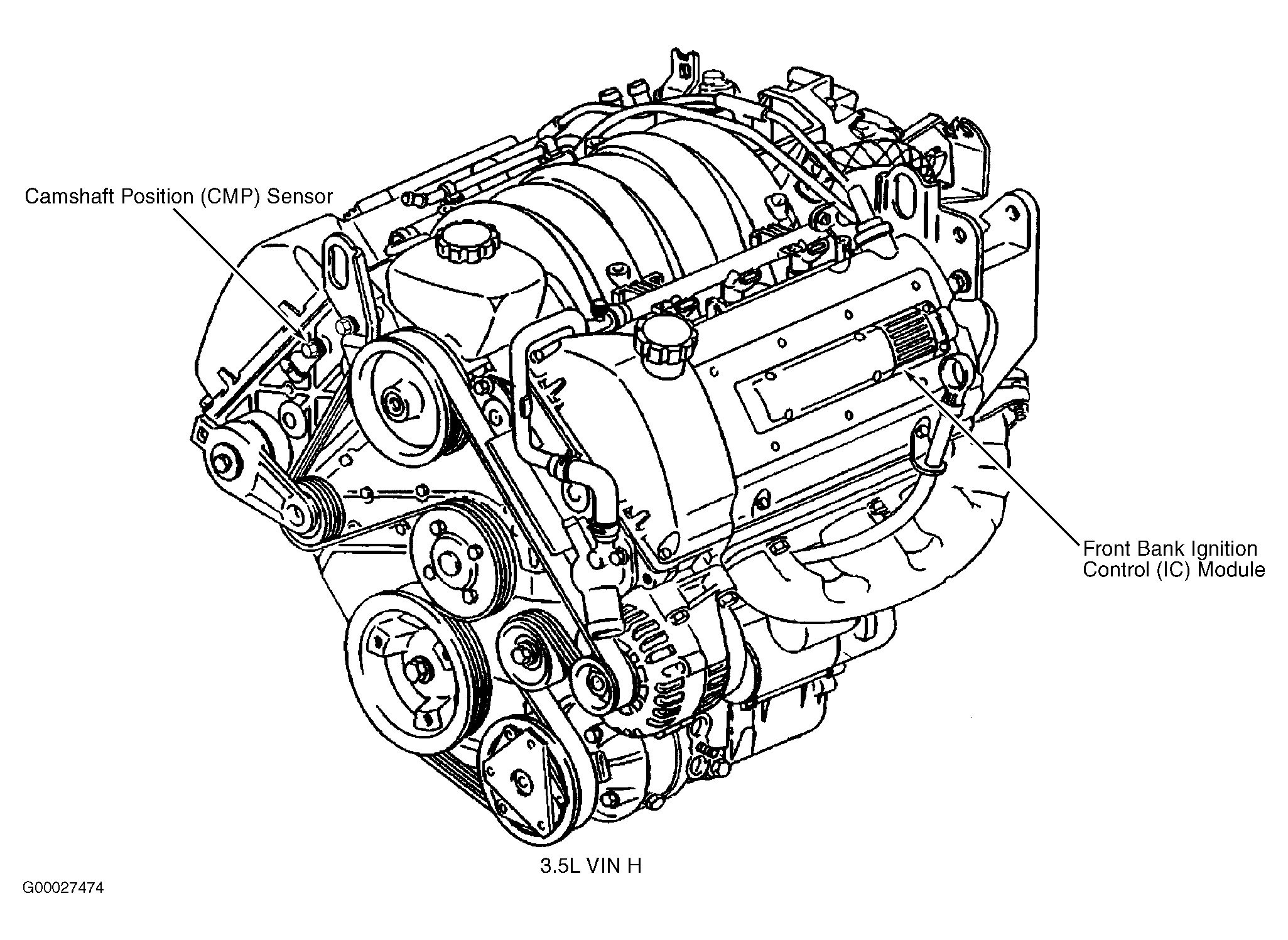 | Front Bank Ignition Control (IC) Module | On top of left engine valve cover. See Figure . |
