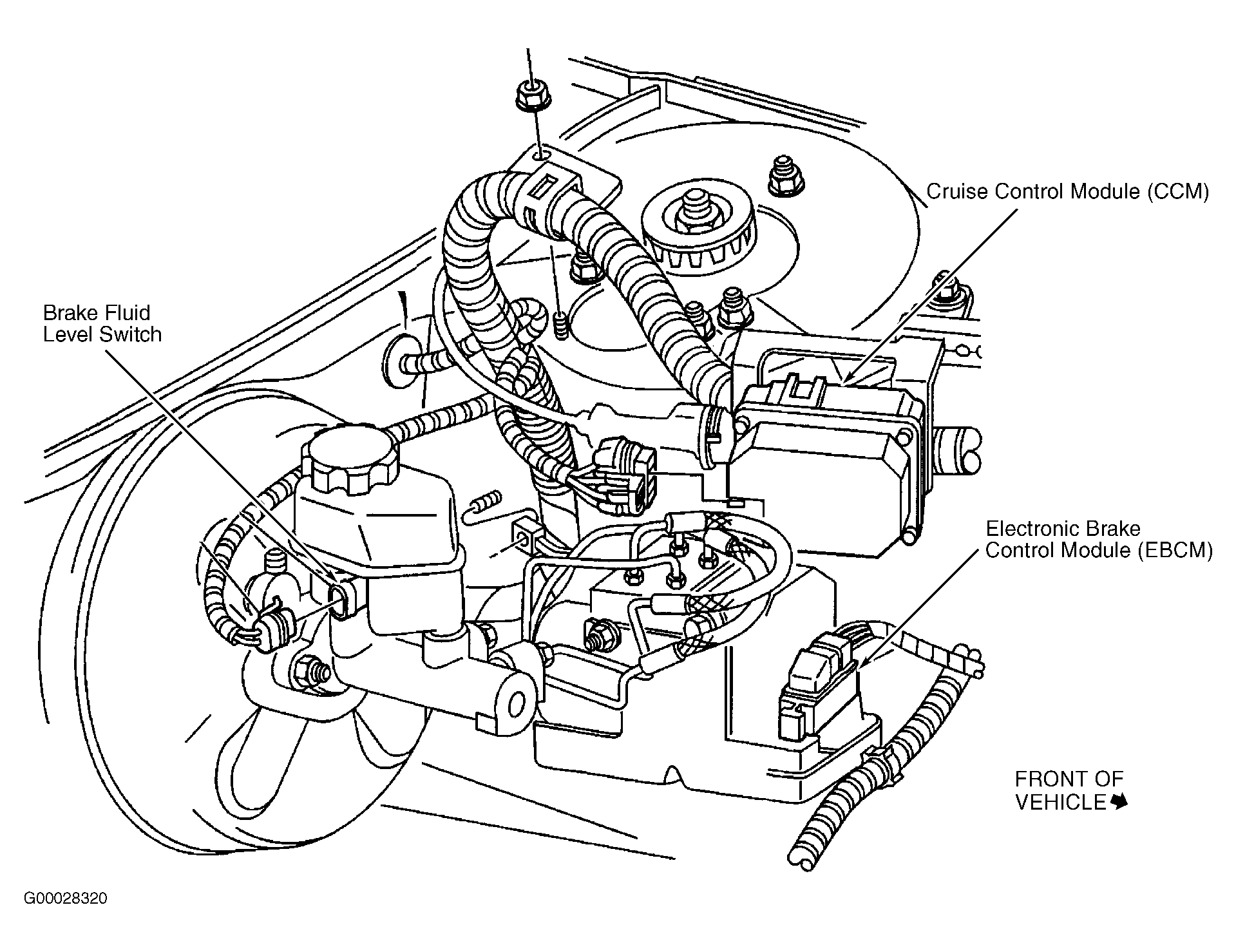 | Electronic Brake Control Module (EBCM) | At left side of engine compartment, integral to BPMV. See Figure . |