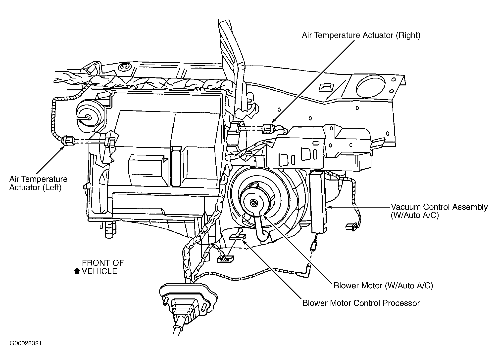 | Blower Motor Control Processor (W/ Auto A/C) | In right side of heater-A/C module. See Figure . |