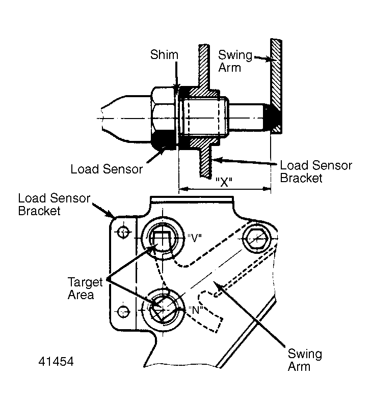- Distance "X" must be 1.14-1.15" (28.9-29.1 mm). If not, remove load sensor and adjust distance "X" using shims.