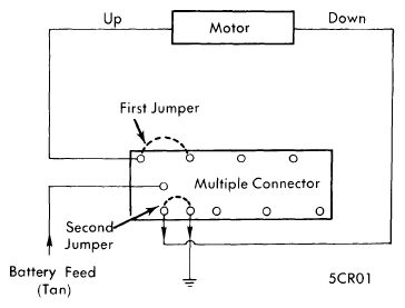 - Using two jumper wires, connect one jumper wire end to tan wire terminal and other end of jumper wire to UP terminal (see Fig 1). Connect other jumper wire to DOWN terminal and ground (see Fig 1).