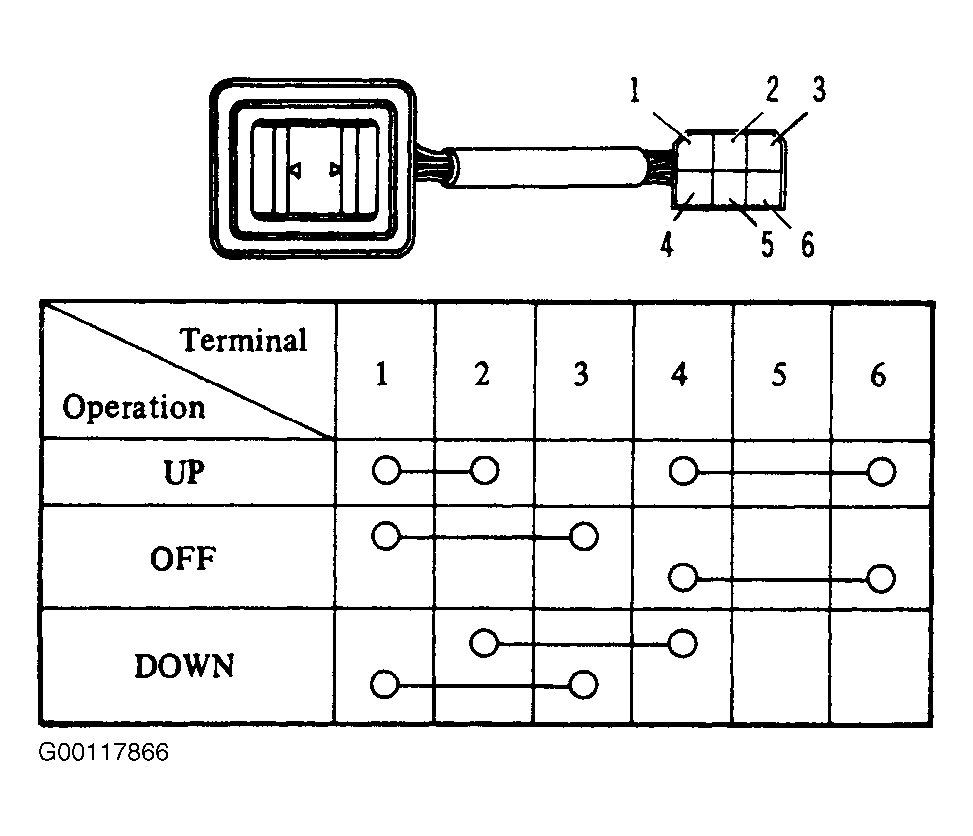Using an ohmmeter, test for continuity between terminals as shown, continuing to press the switch knob either up or down. See Fig 1 .