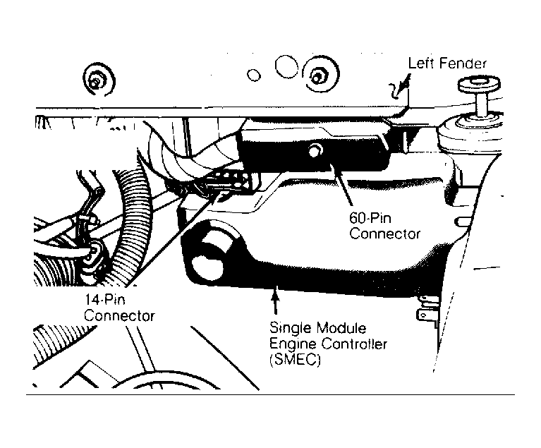 The SMEC is a microprocessor based digital computer, with 60-pin and 14-pin connectors. The SMEC receives input signals from various switches, sensors and other components. Using these signals, the microprocessor computes fuel injector pulse width, spark advance, ignition coil dwell, automatic idle speed actuation, canister purge cycle, cooling fan operation, and alternator output.