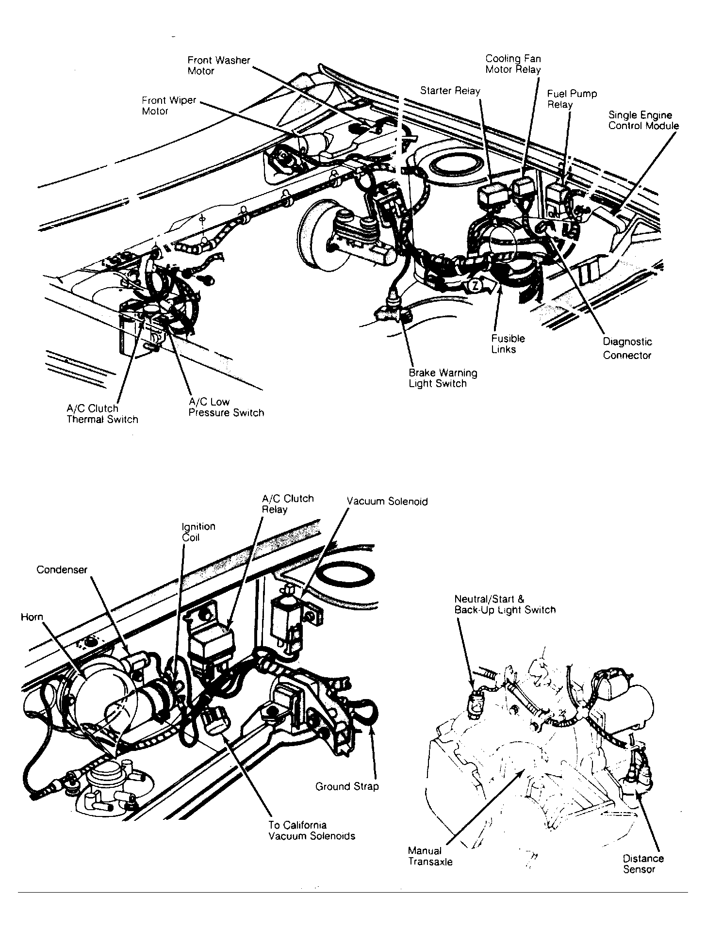| Ignition Switch (Gray & Orange) | On left strut tower. See Figure . | |