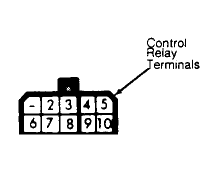 2. While applying battery voltage to control relay terminal No. 10, ensure battery voltage is not present at terminals No. 4 and 5. See Fig 1 . While applying battery voltage to terminal No. 10 and grounding terminal No. 8, ensure battery voltage exists at terminals No. 4 and 5.