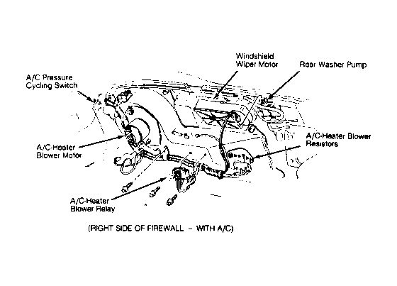 | A/C-Heater Blower Resistors | On firewall, on right side of plenum. See Figure. | |
