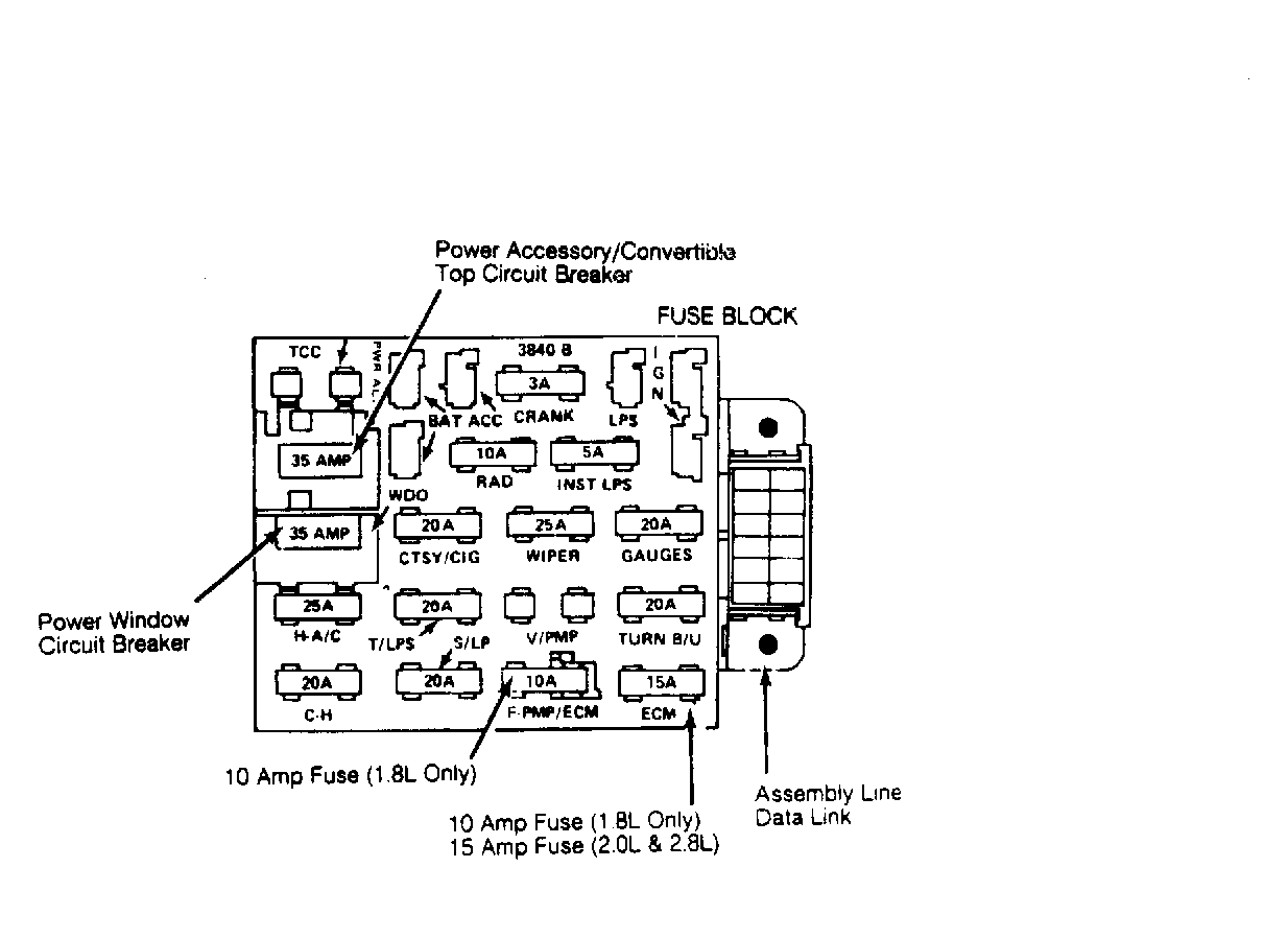 | Power Window Circuit Breaker | On fuse block. See Figure. | |