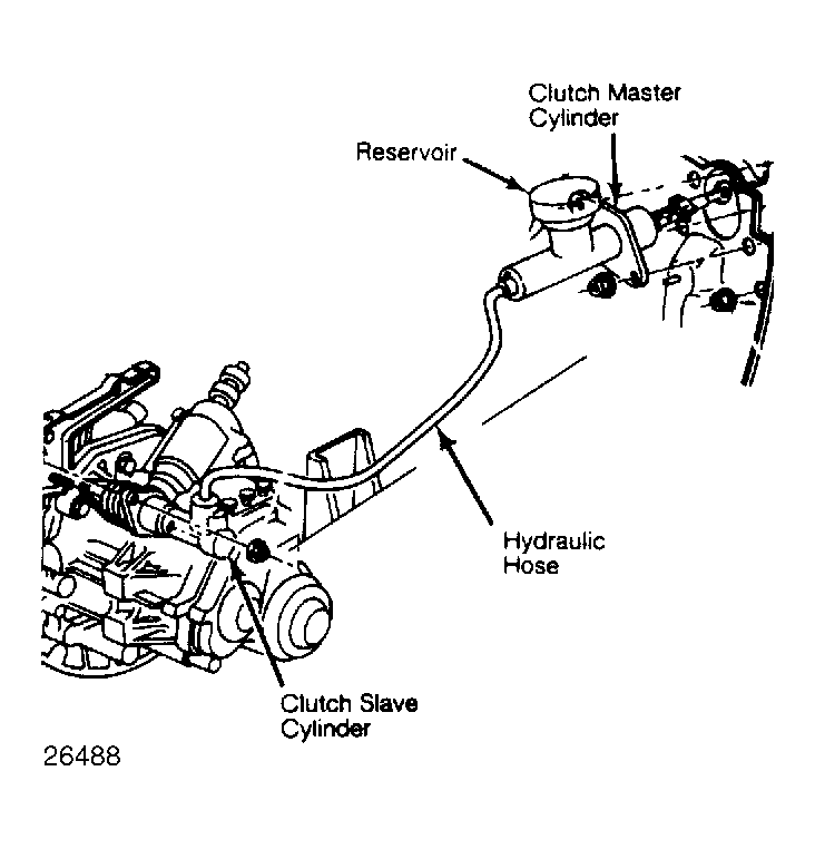 The hydraulic clutch system locates the clutch pedal height and provides automatic clutch adjustment. No adjustment is ever required of clutch linkage or pedal position. See Fig 1 .