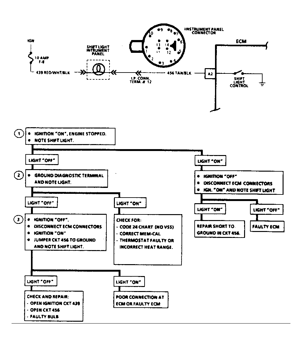 Use circuit wiring diagram and diagnostic flow chart (C-8B) to diagnose shift light on manual transmission vehicles. See Fig 1 .