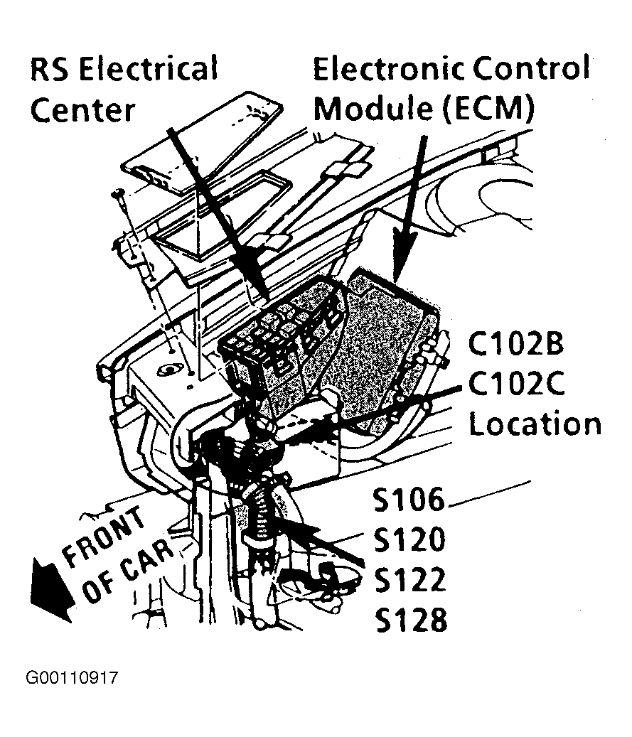 | RS Electrical Center | Right Side Of Engine Compartment, Front Of Strut Tower. See Fig 4 . |