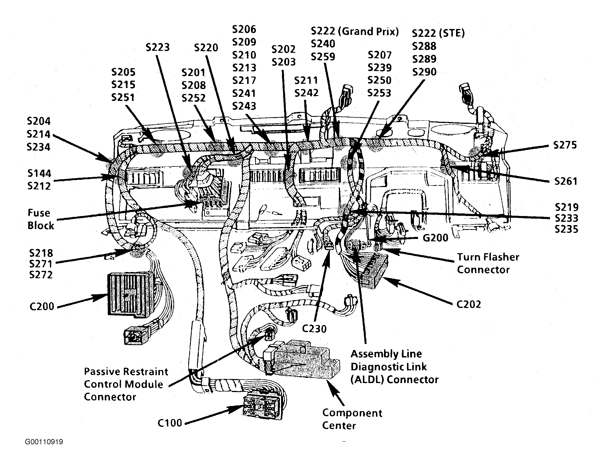 | S223 | Instrument Panel Harness, Behind Right Side Of Instrument Panel. See Fig 1 . |