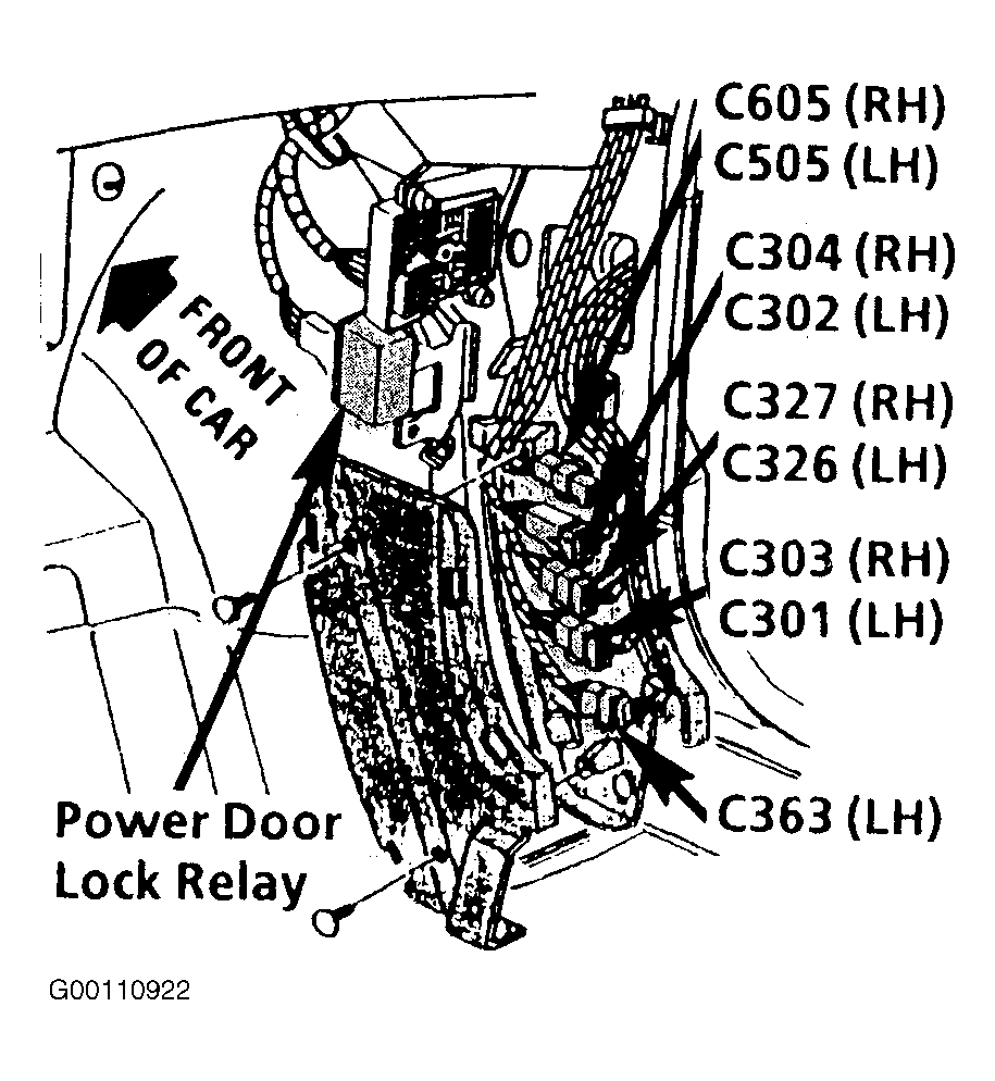 | Power Door Lock Relay | Right Shroud, Above Center Access Hole. See Fig 3 . |