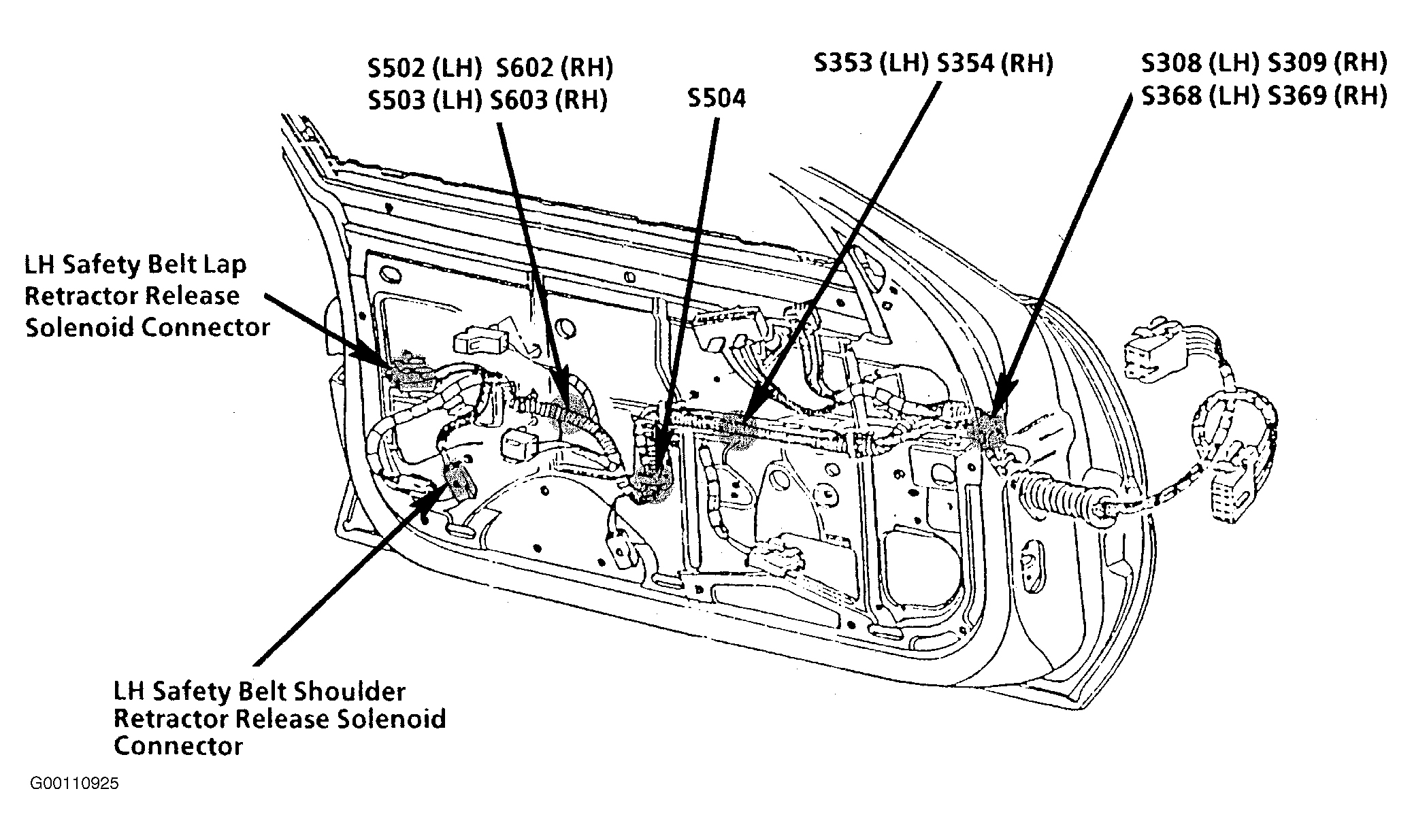 | S353 | Left Front Door Harness, Inside Middle Of Door. See Fig 10 . |