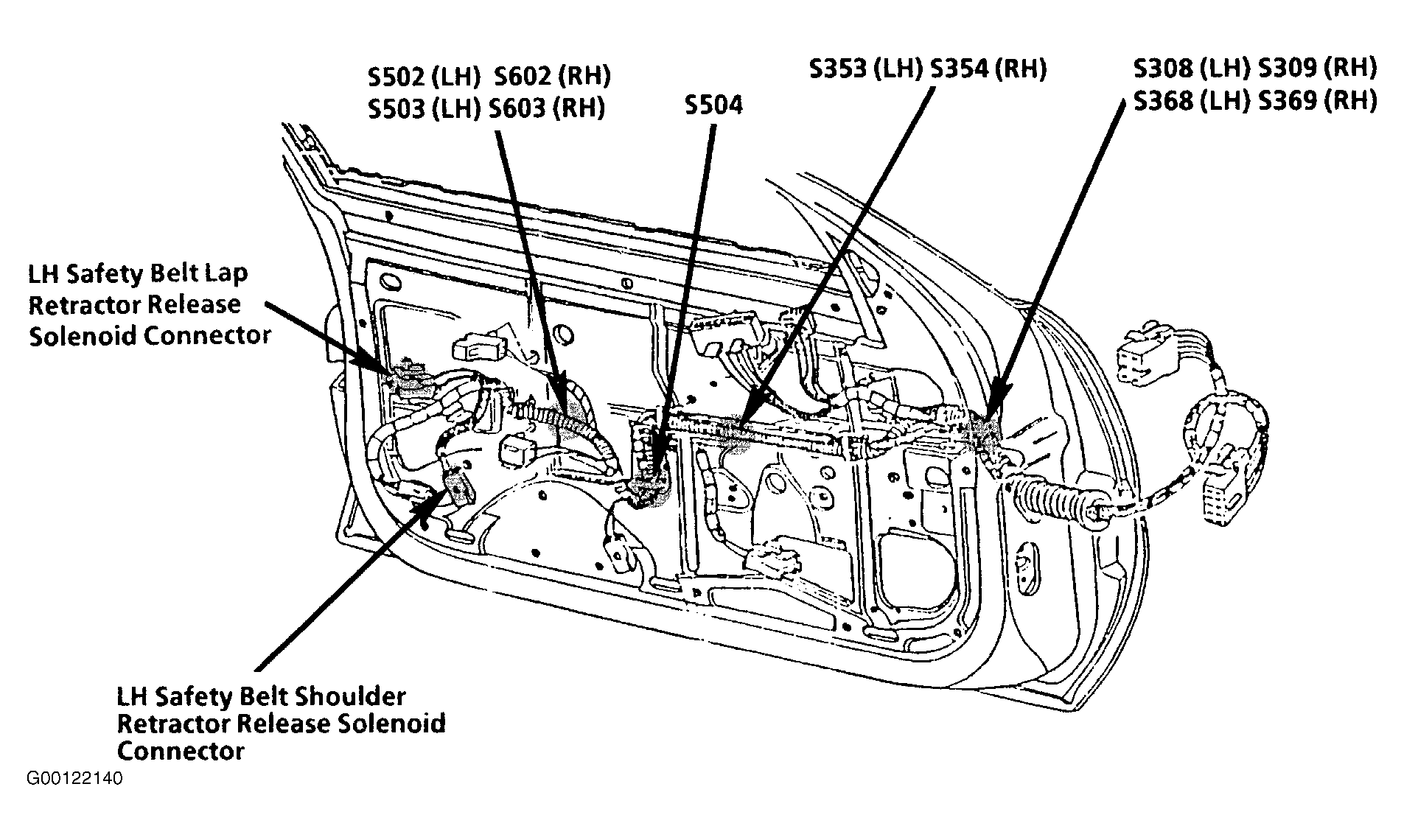 | S308 | Left Front Door Harness, Inside Front Of Door. See Fig 6 . |