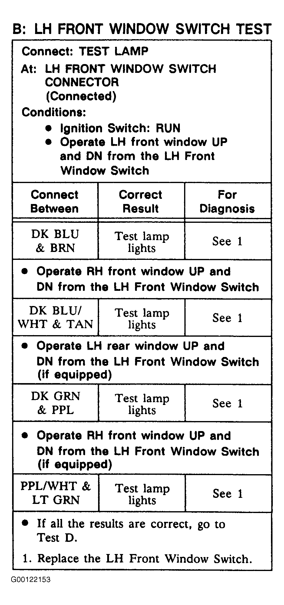 Left Front Window Switch Test