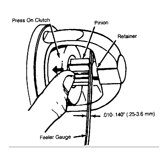- Push pinion away from stop retainer as far as possible. See Fig 2. Using a feeler gauge, ensure .010-.140" (.25-3.6 mm) clearance exists between pinion and retainer.