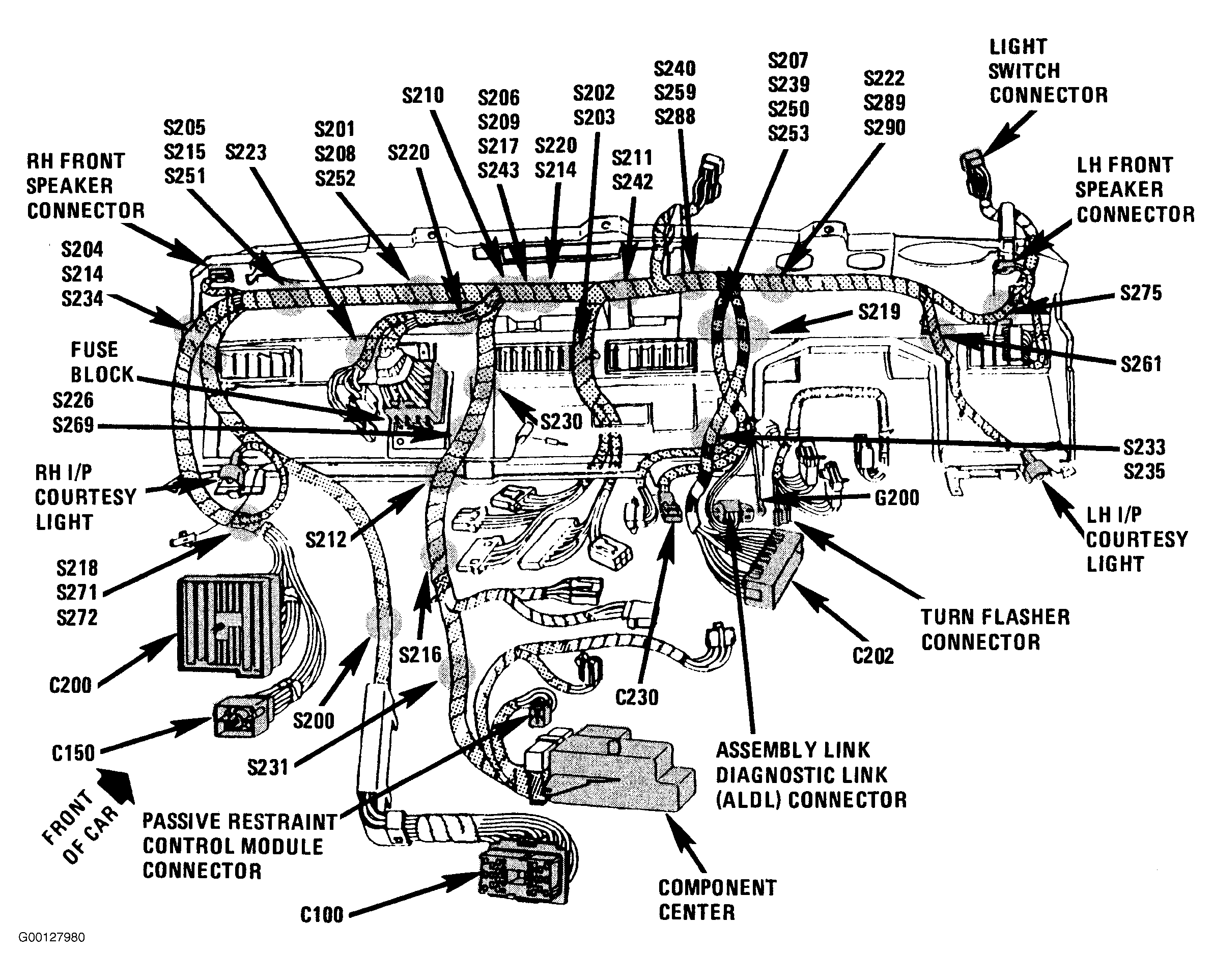 | C200 (106 Cavities) | Behind Right Side Of Instrument Panel, Near Shroud. See Fig 4 . |