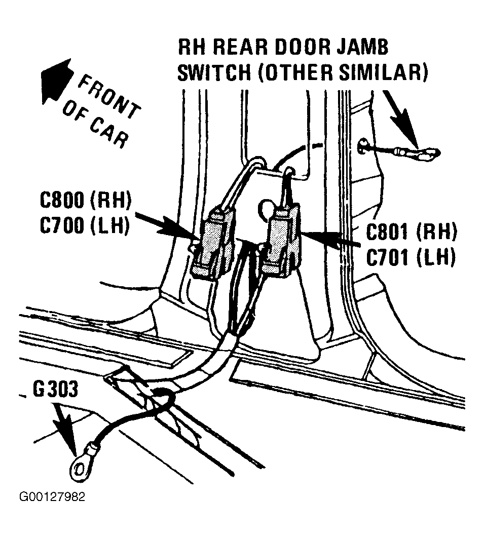 | C701 (Grand Prix, 4 Cavities) | In Left Rear Door Jamb. See Fig 3 . |