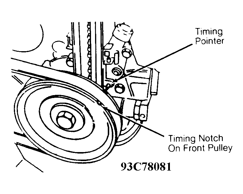 - SERVICE ENGINE SOON light will flash while DLC is grounded. Connect inductive timing light to No. 1 spark plug wire. Notch in crankshaft pulley should align with stationary pointer on front of engine. See Fig 2 .
