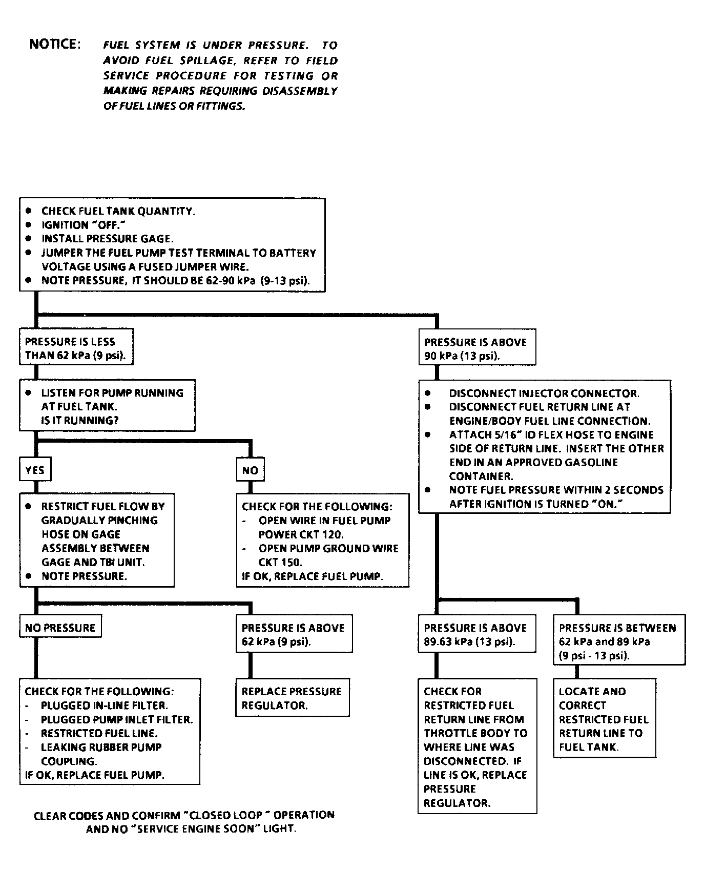 ). If pressure is within specification, go to next step. If fuel pressure is not within specification, refer to diagnostic flow charts. See Figure