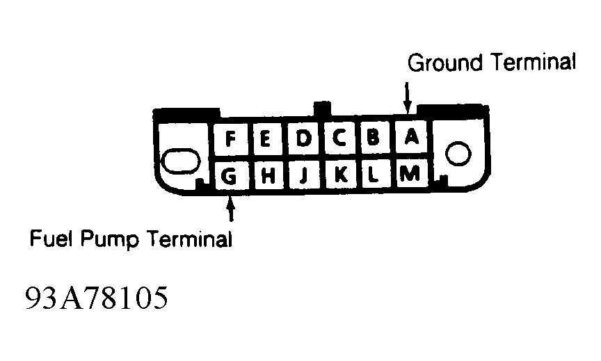 - Release fuel pressure. See FUEL PRESSURE RELEASE above. Remove fuel pressure gauge. To measure fuel pump volume, insert end of fuel line into a container. Apply battery voltage to terminal "G" of DLC test connector. See Fig 1