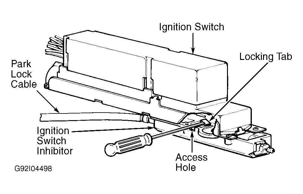 On column shift models, these preventions are accomplished through a brake/transmission shift interlock solenoid, cable and cam assembly mounted on the column. On floor shift models, these preventions are accomplished through a park lock cable connected between shift lever and ignition switch inhibitor. See Figure.