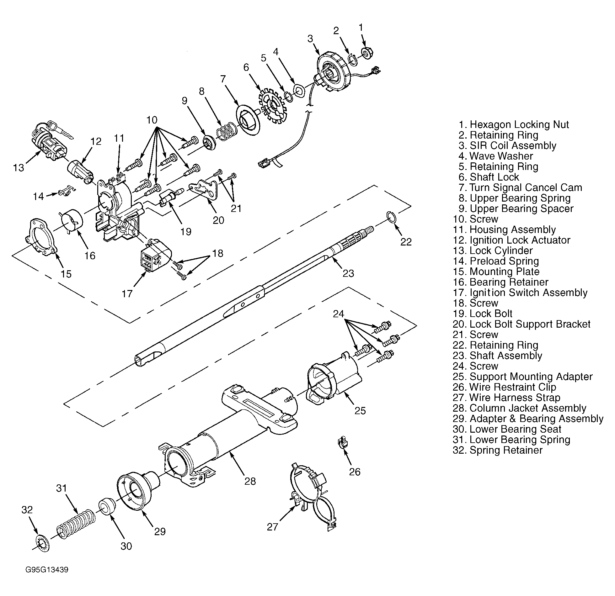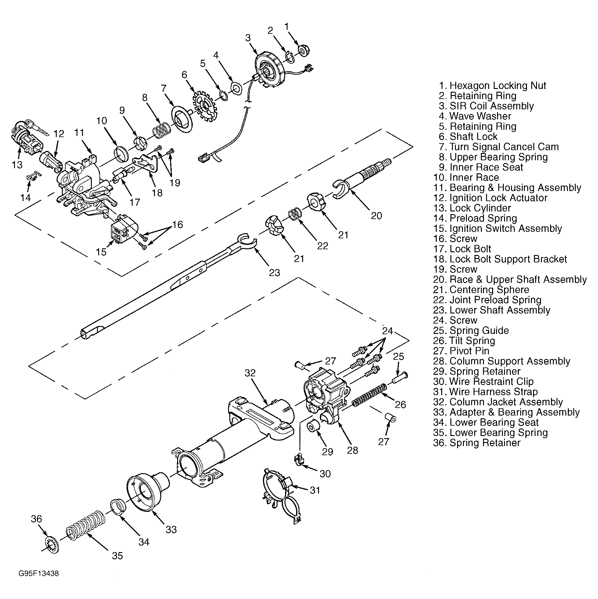Use illustrations for exploded view of steering column. See