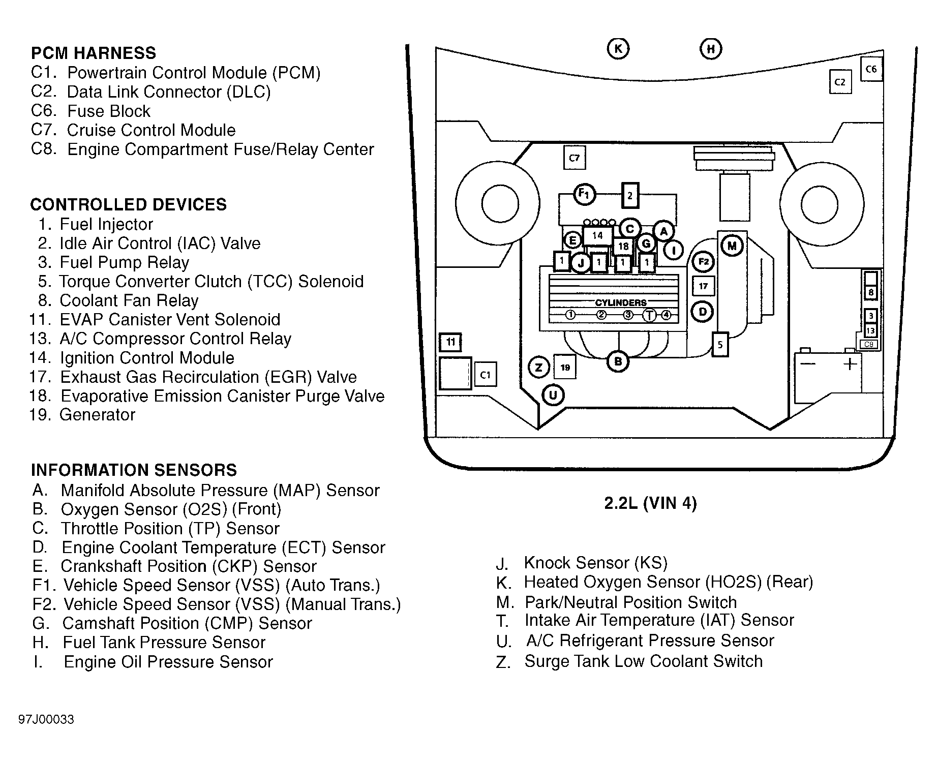 | Powertrain Control Module (PCM) (2.2L VIN 4) | Behind right side of front fascia, on impact bar. See Figure . |