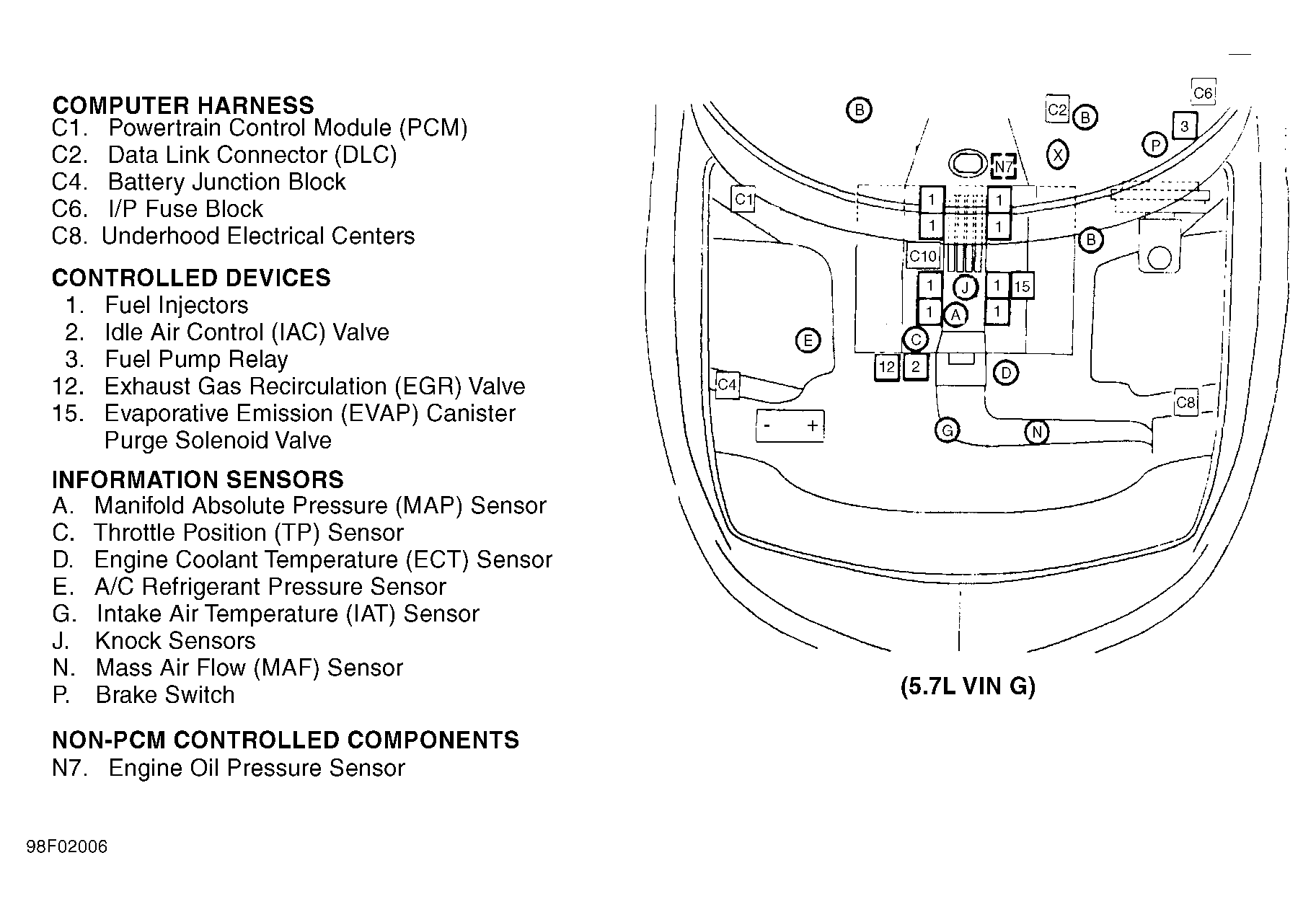 | Powertrain Control Module (PCM) (5.7L VIN G) | In engine compartment, behind right strut tower. See Figure . |