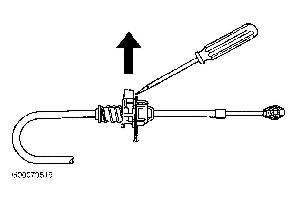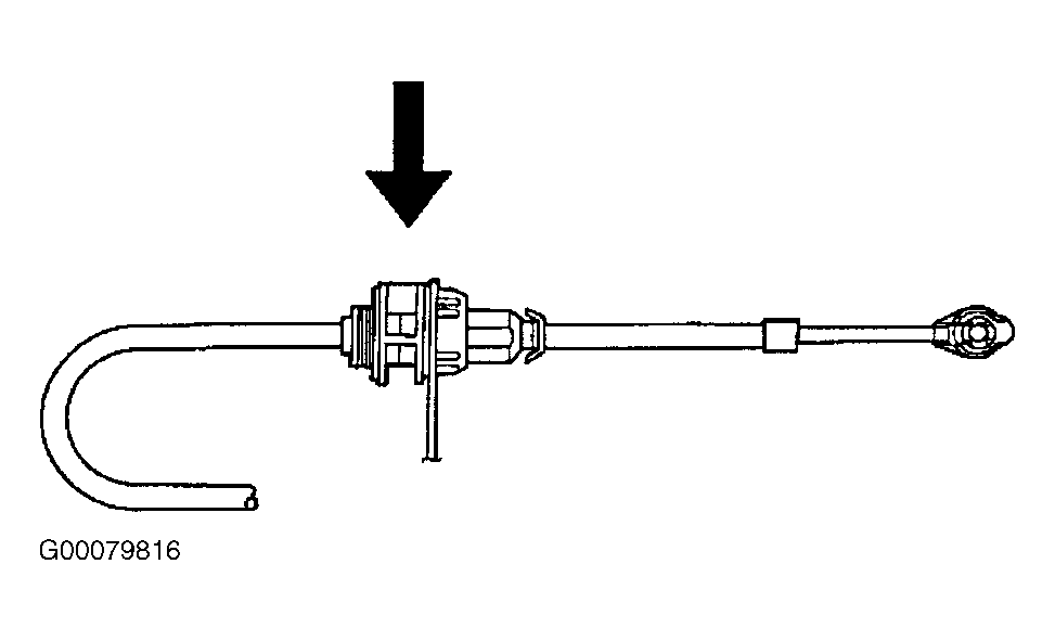 - Grasp the shift cable terminal in the engine compartment. Pull the shift cable terminal toward the pin on the gearshift lever. The shift cable adjuster spring should compress as the terminal is moved toward the pin.
