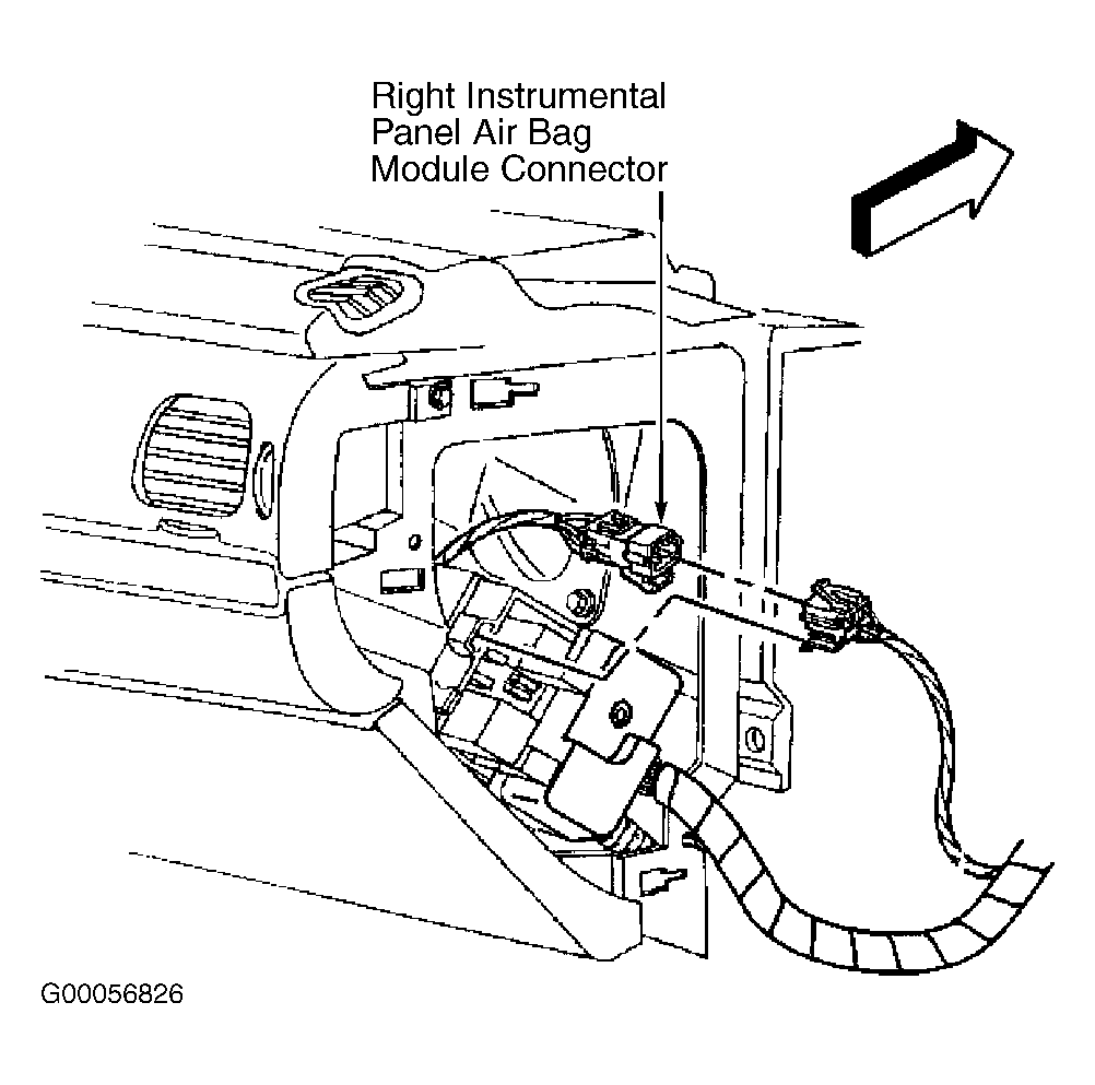 Fig 2: Identifying Right Instrument Panel Air Bag Module Connector