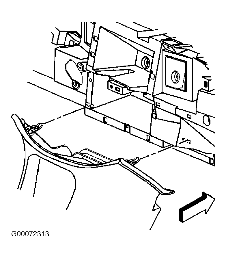 - Remove front floor console bolts near instrument panel, at transaxle shift control lever and under mat in rear bin. Pull console rearward in order to disengage clips from instrument panel. See Fig 2. Disconnect electrical connectors. Remove front floor console.