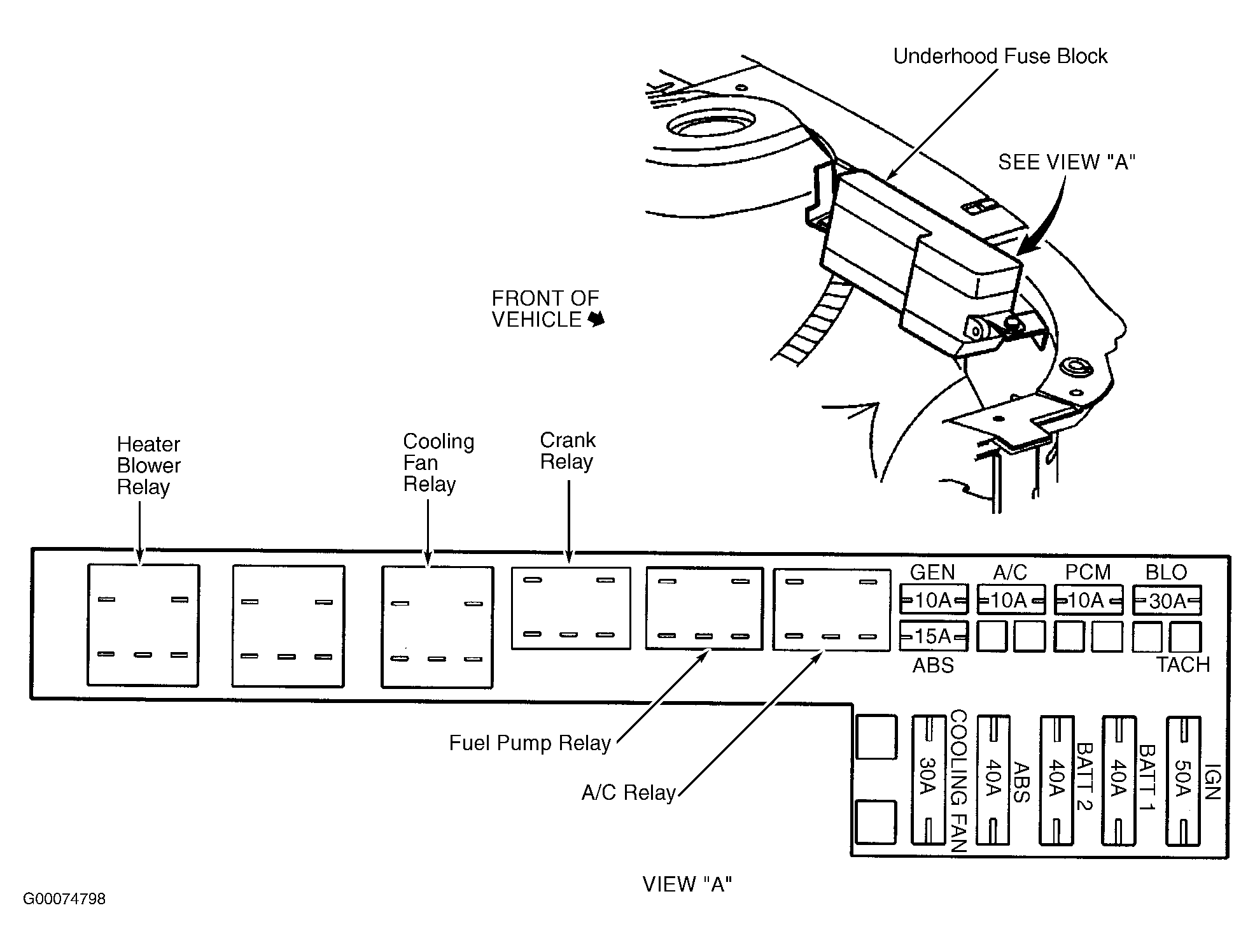 | Underhood Fuse Block | Left front of engine compartment. See Figure. |