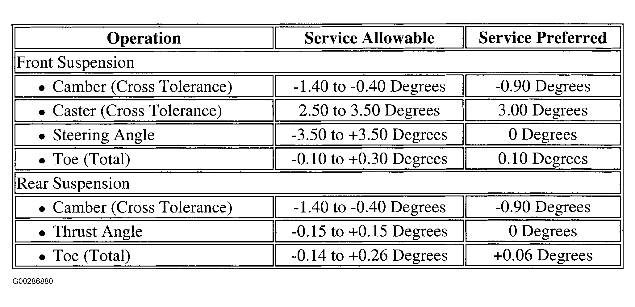 Wheel Alignment Specifications: Specifications