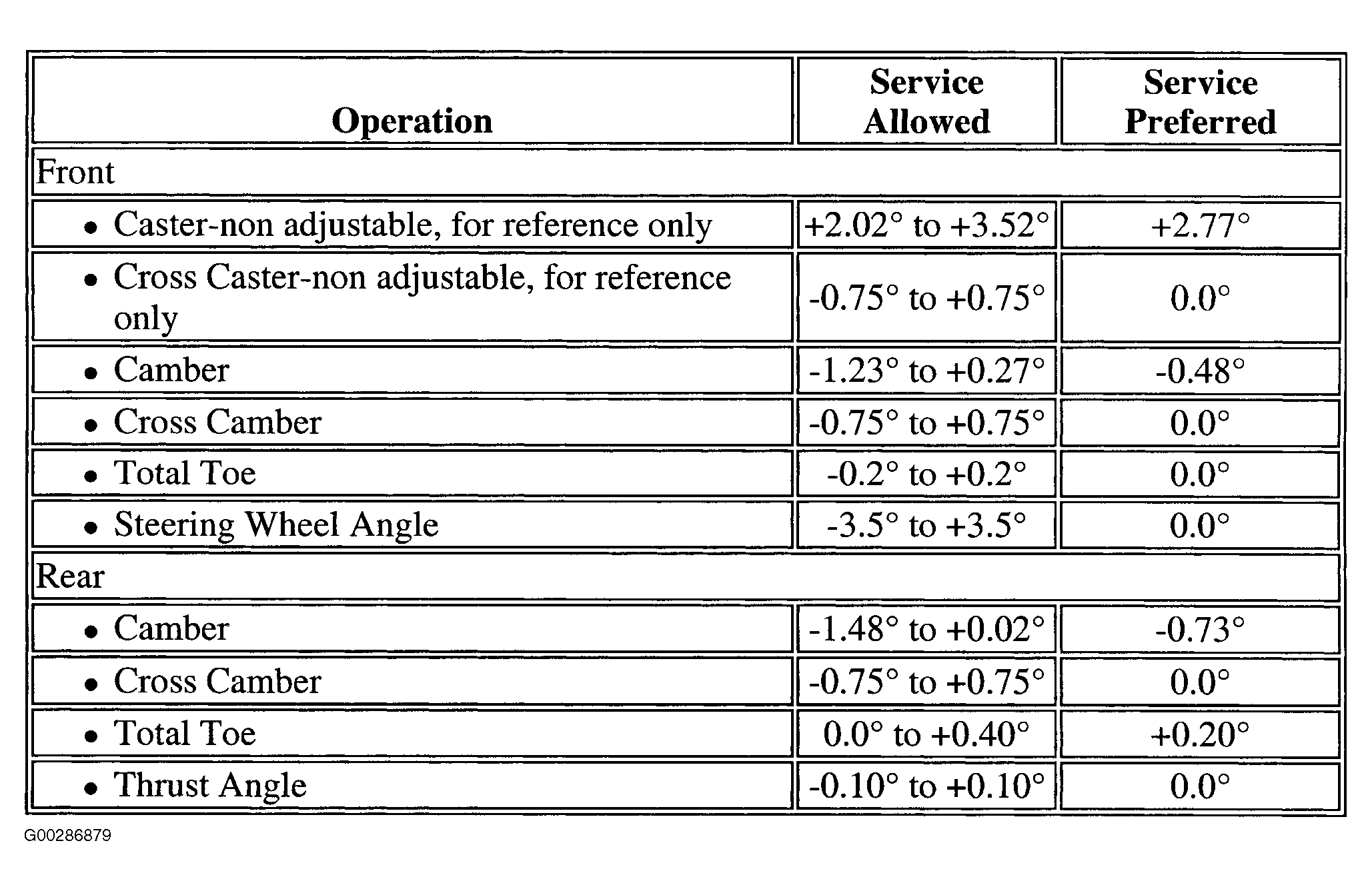 Wheel Alignment Specifications