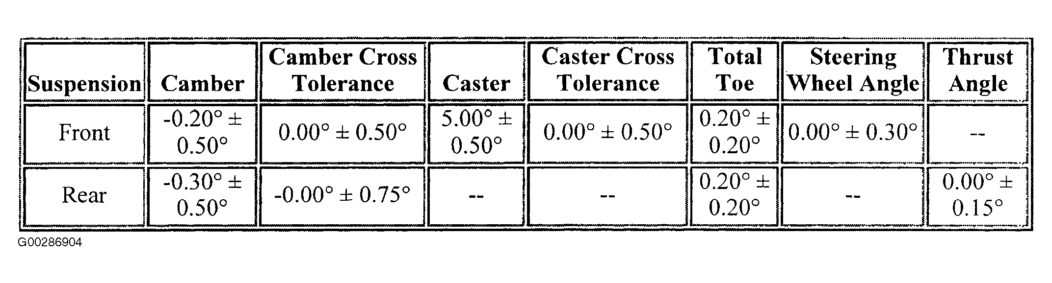 Wheel Alignment Specifications