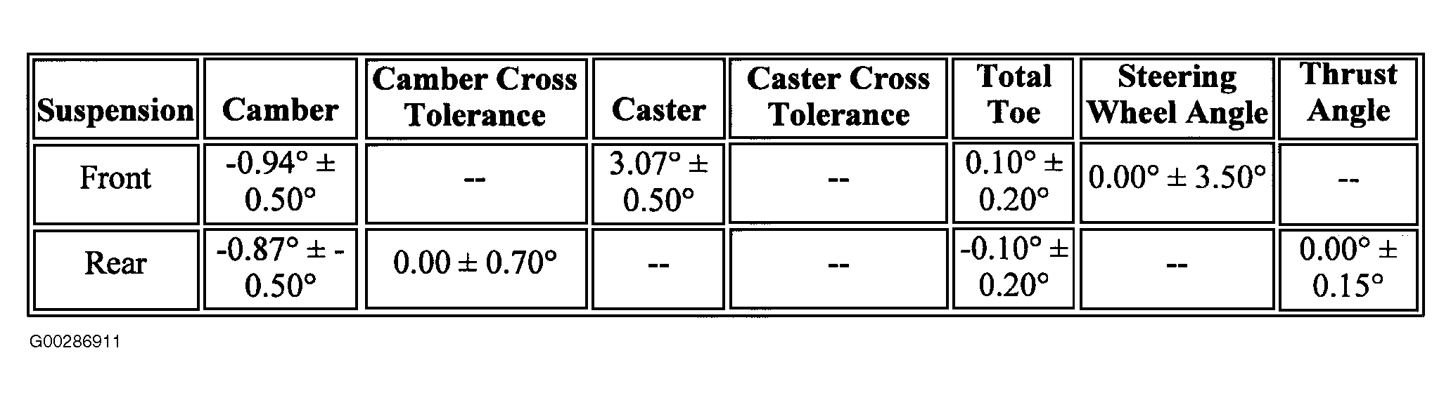 Wheel Alignment Specifications: Specifications