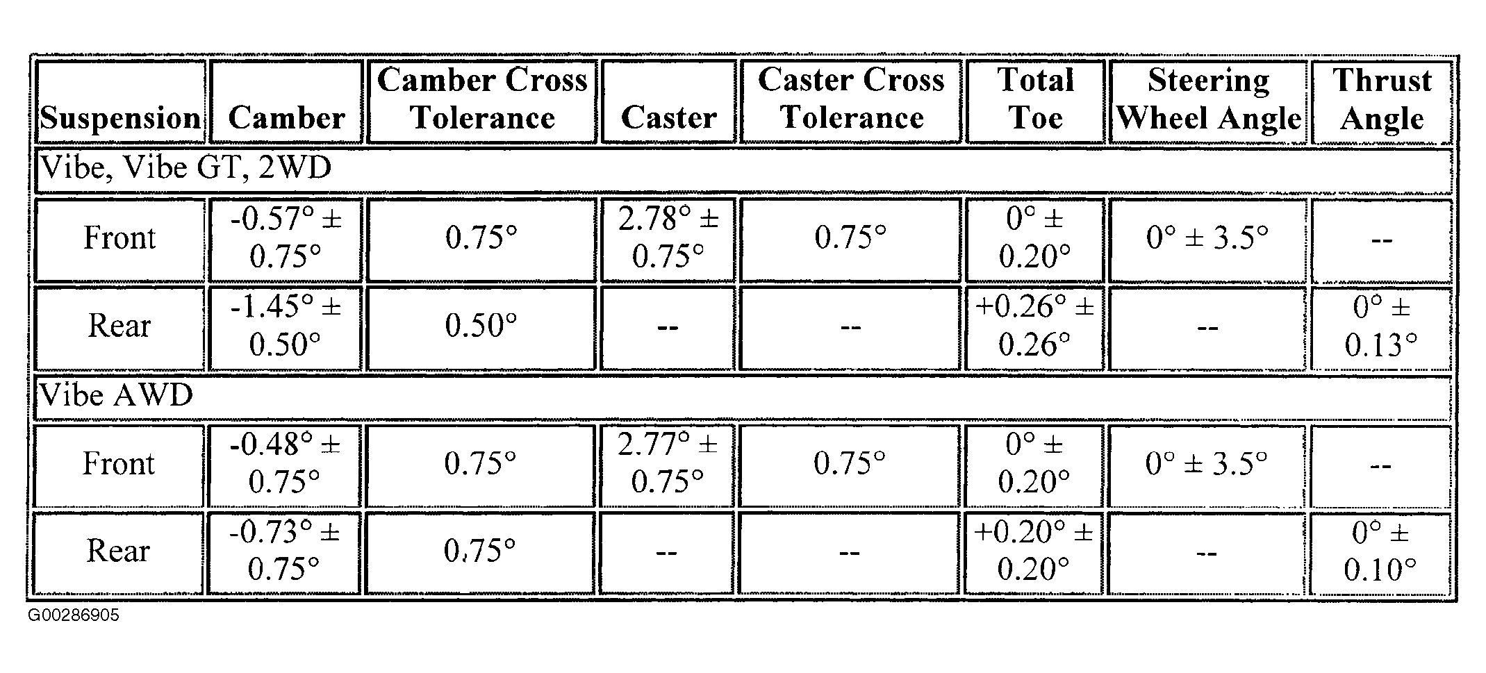 Wheel Alignment Specifications