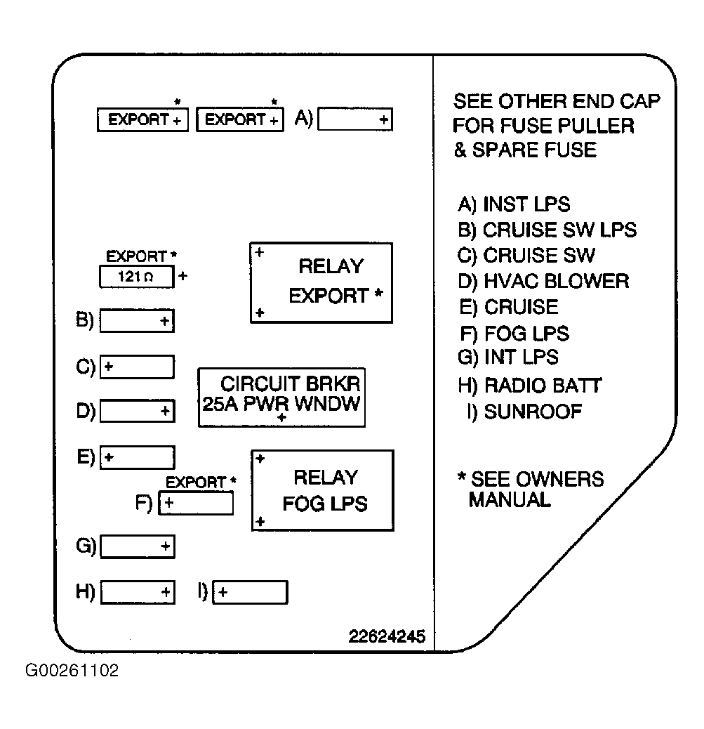 | Circuit Breaker (Power Window) | In right I/P fuse block. See Figure . |