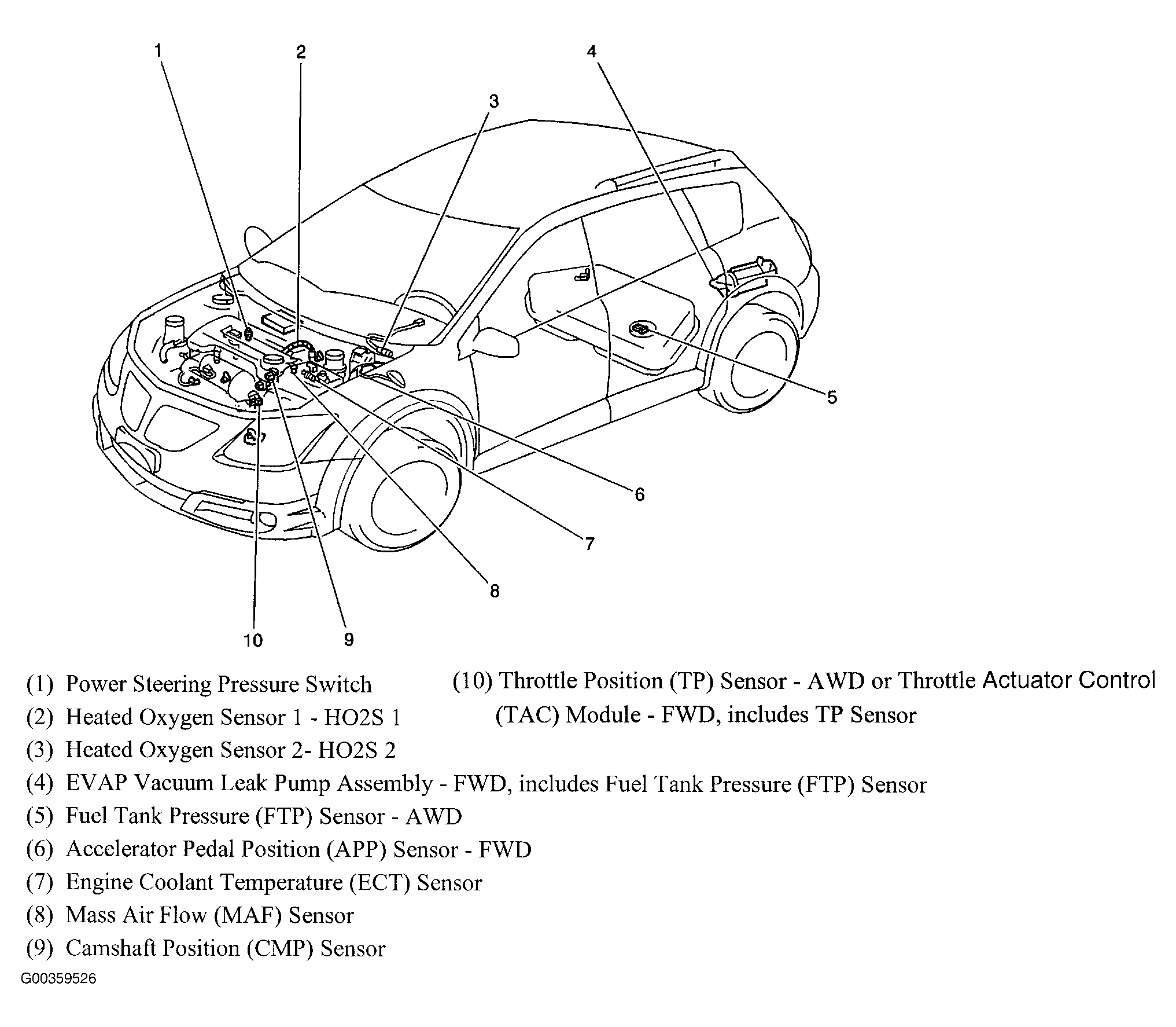 | Throttle Actuator Control (TAC) Module (LV6 W/FWD Only) | LF of engine, attached to throttle body. See Figure . |
