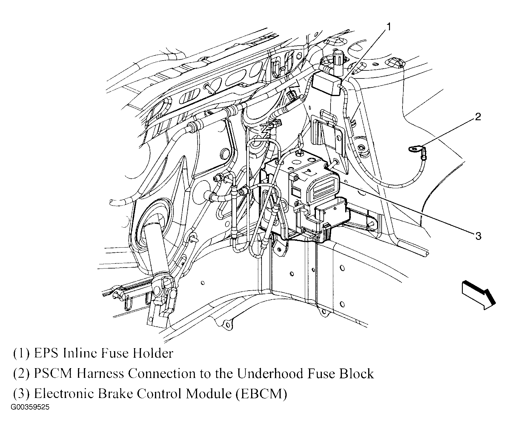 | Electronic Brake Control Module (EBCM) | Below brake master cylinder. See Figure. |