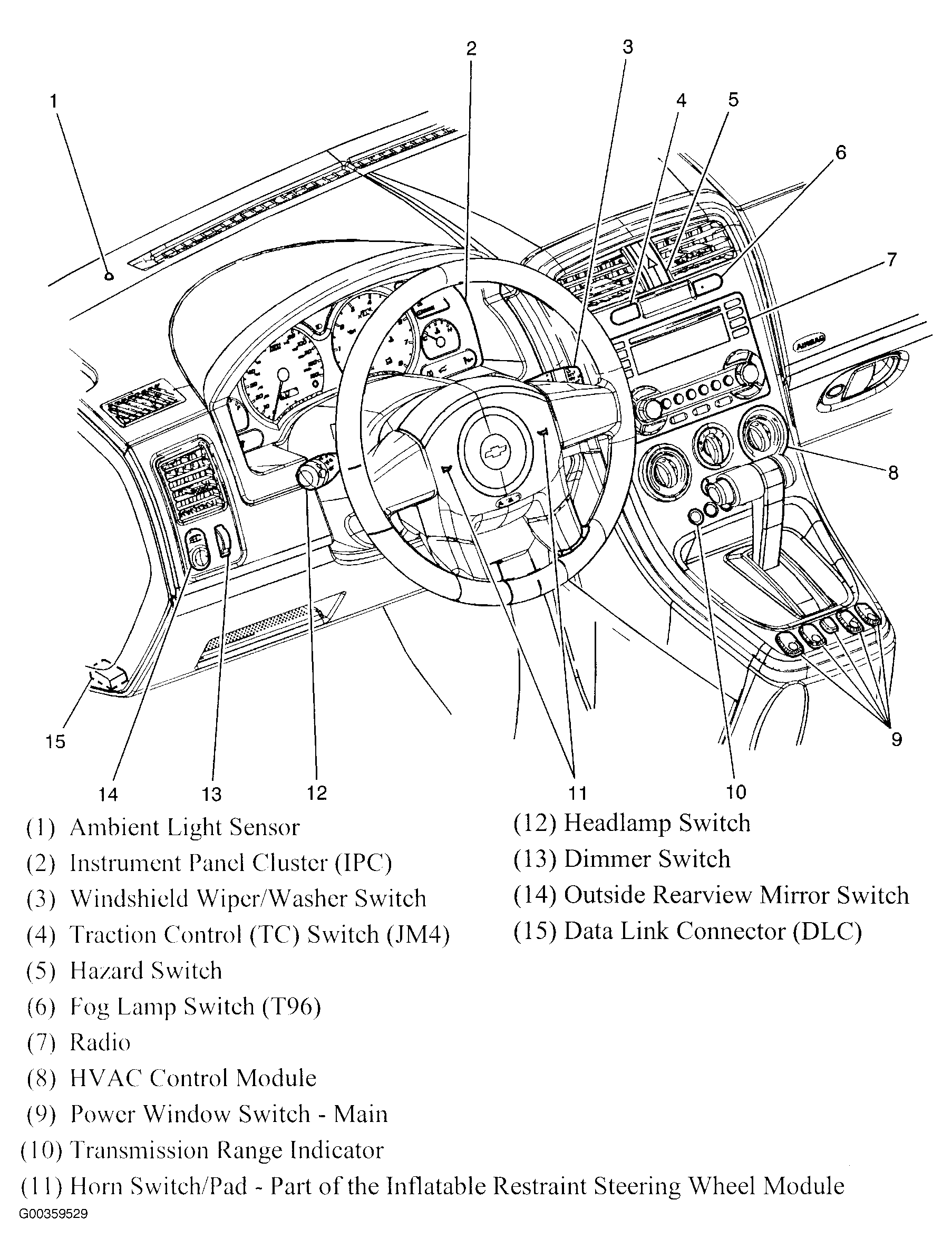 | Inflatable Restraint Steering Wheel Module | In center of steering wheel. See Figure. |