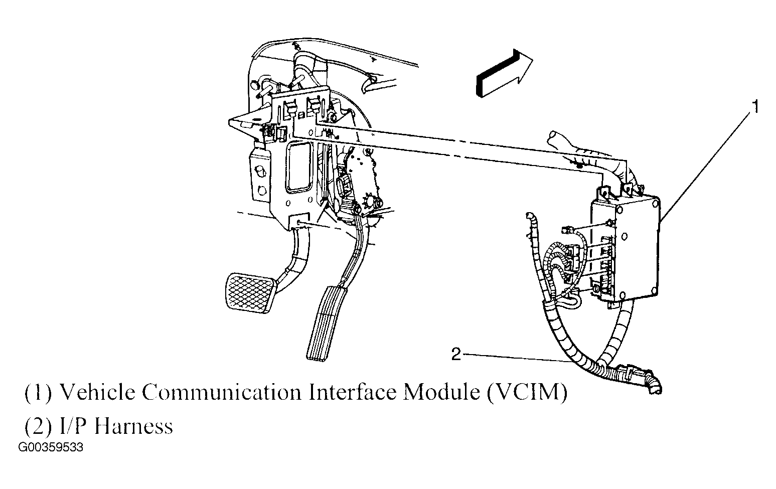 | Vehicle Communication Interface Module (VCIM) | Attached to brake pedal bracket. See Figure. |