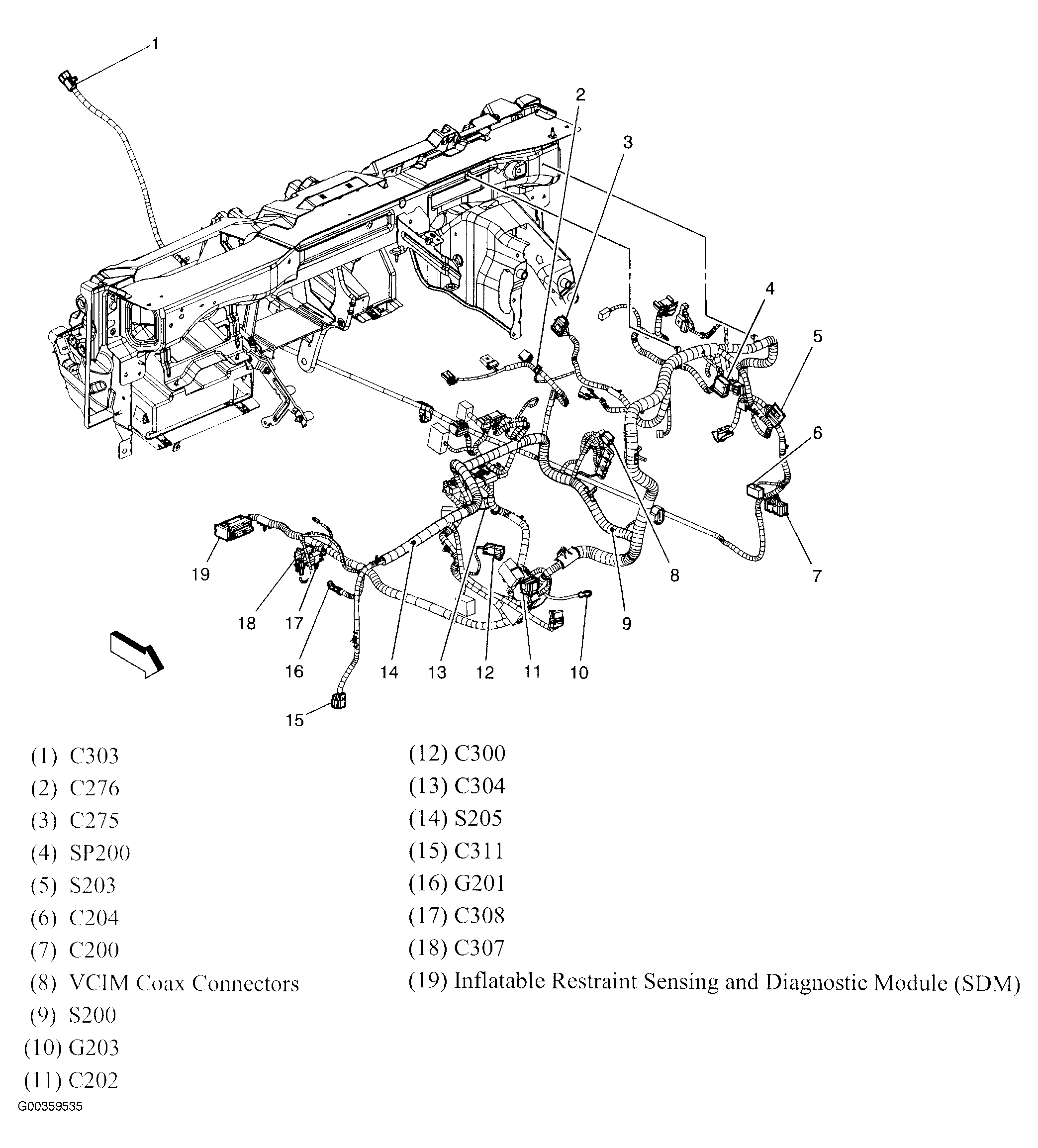 | Inflatable Restraint I/P Module | Behind top right side of dash. See Figure. |