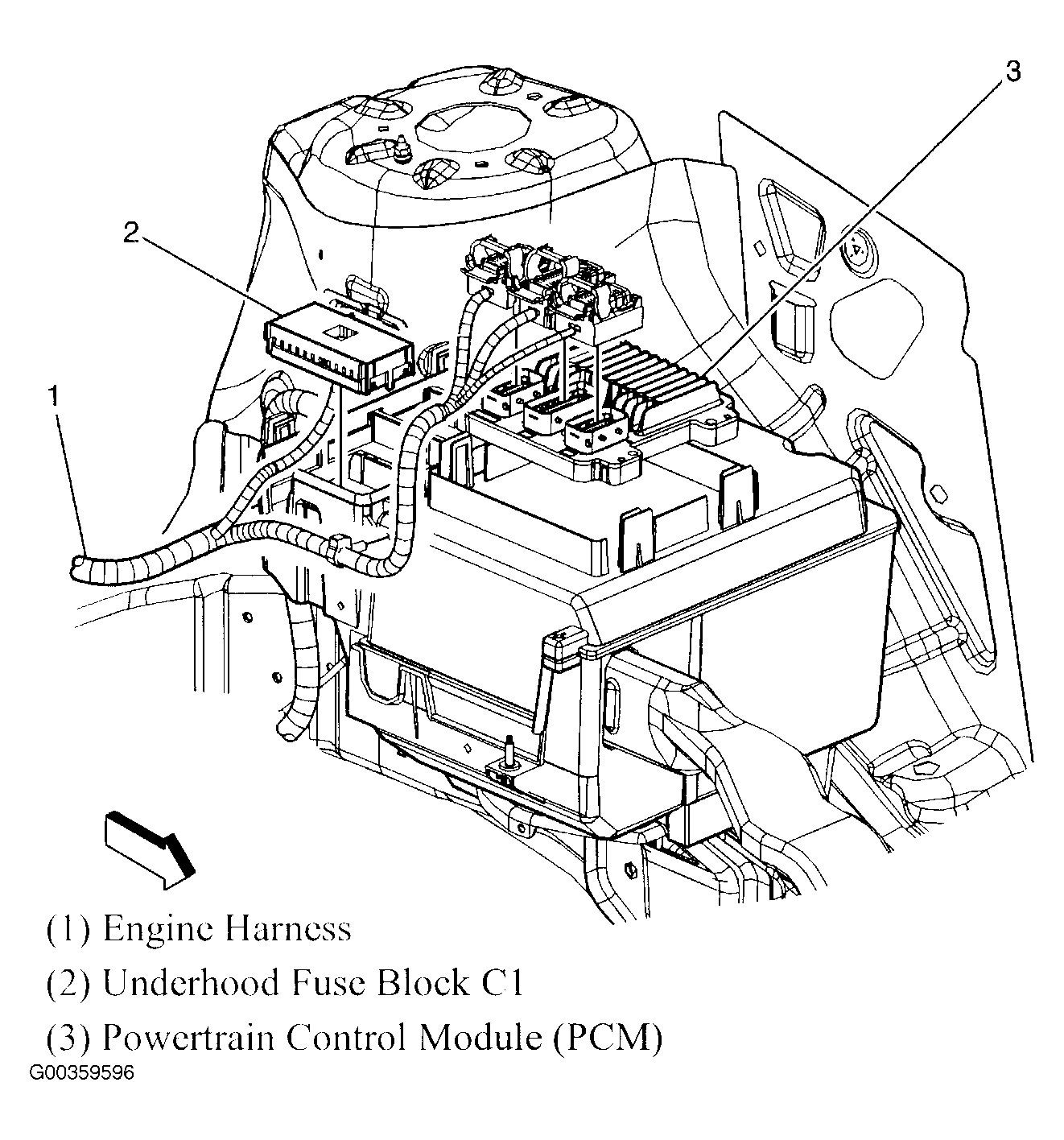 | Powertrain Control Module (PCM) | In engine compartment, mounted on top of battery cover. See Figure. |