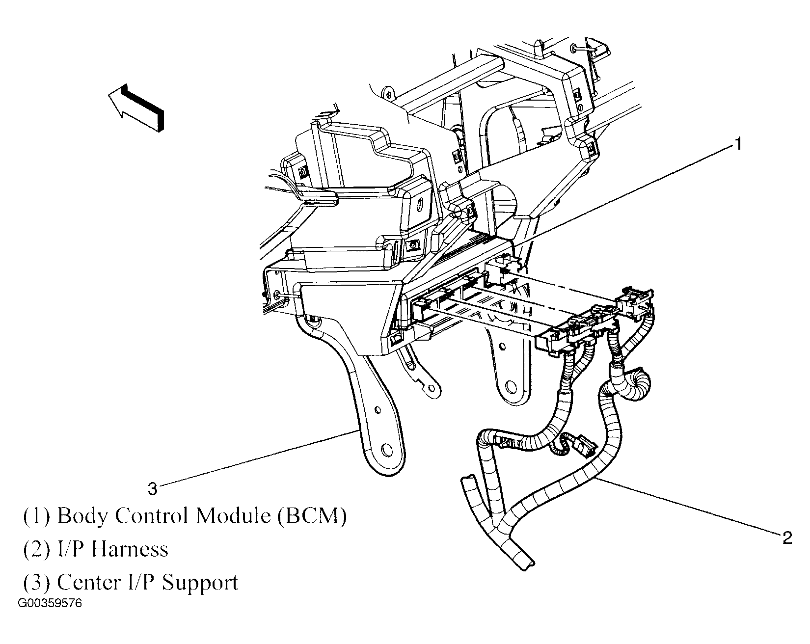 Body Control Module (BCM) Center of dash, behind HVAC control module. See Figure.