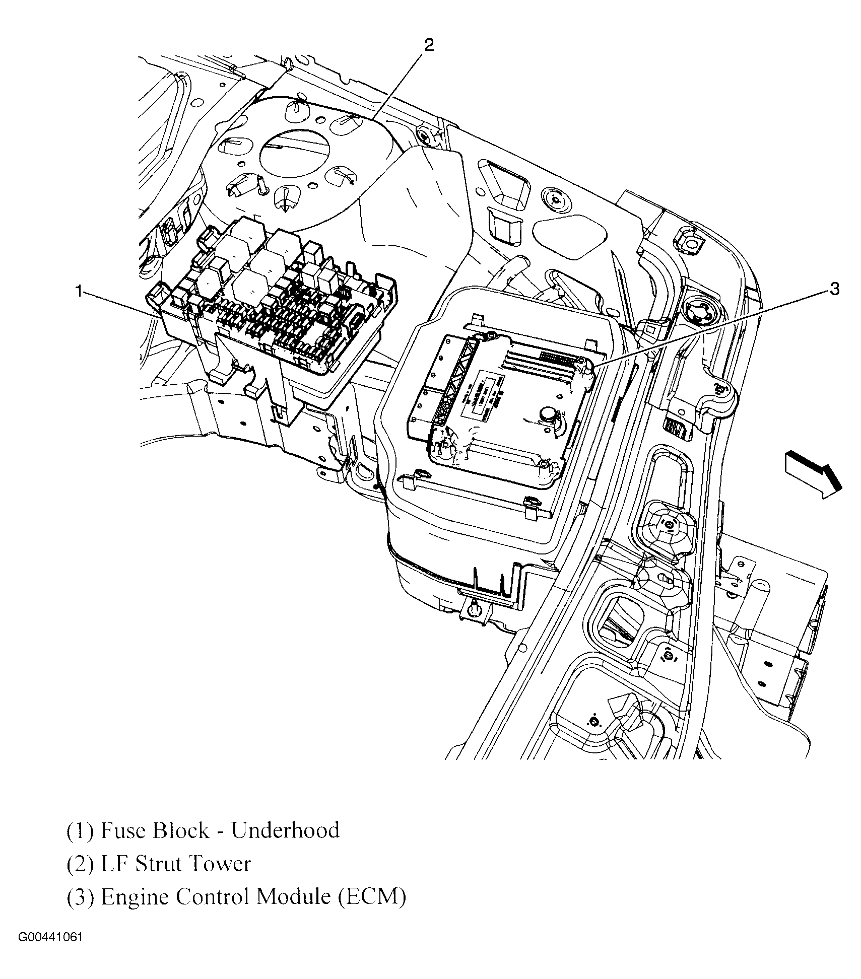 Engine Control Module (ECM) Mounted on top of battery cover. See Figure.