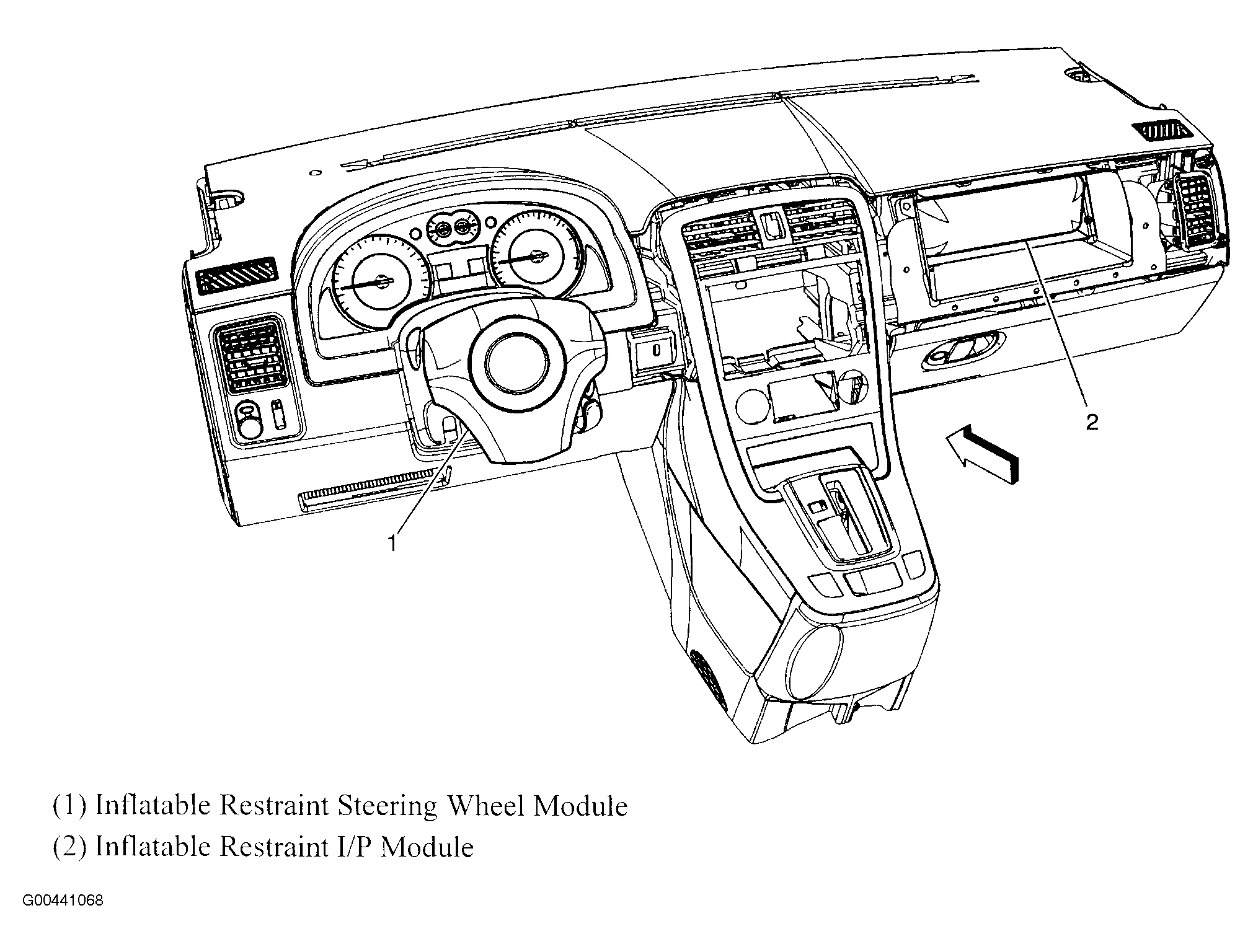 Inflatable Restraint I/P Module Right side of dash. See Figure.